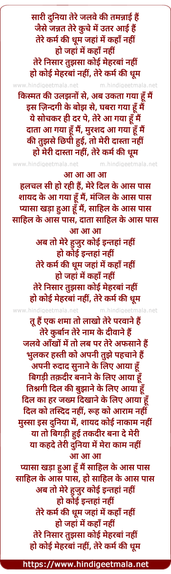 Poetic Translation - Lyrics of Tere Karam Ki Dhoom Jaha Me Kaha Nahi - तेरे कर्म की धूम जहां में कहाँ नहीं