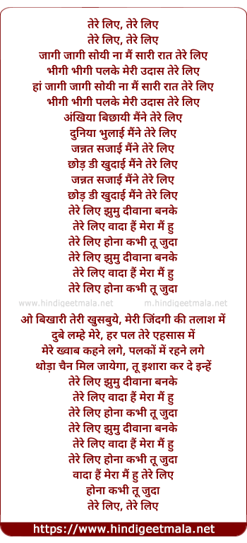 Lyrics of Tere Liye (Hip Hop Mix) - तेरे लिए, तेरे लिए