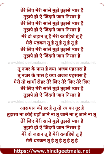 Lyrics of Tere Liye Meree Sanse - तेरे लिए मेरी सांसे