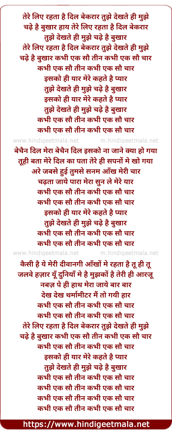 Lyrics of Tere Liye Rehta Hai Dil Beqaraar - तेरे लिए रहता है दिल बेकरार