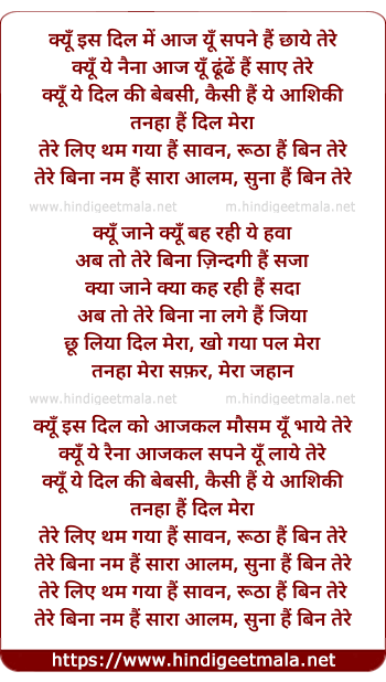 Lyrics of Tere Liye Tham Gaya Hai Sawan - तेरे लिए थम गया है सावन