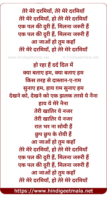 Lyrics of Tere Mere Darmiya - तेरे मेरे दरमियाँ, तेरे मेरे दरमियाँ