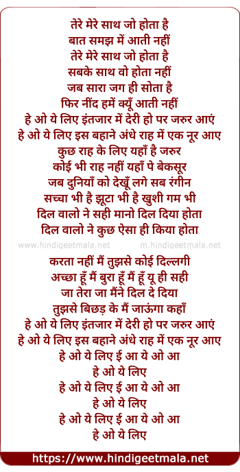 Lyrics of Tere Mere Saath Jo Hota Hai - तेरे मेरे साथ जो होता है