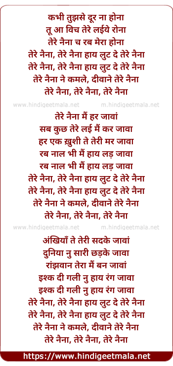 Lyrics of Tere Naina Dil Mera - तेरे नैना दिल मेरा