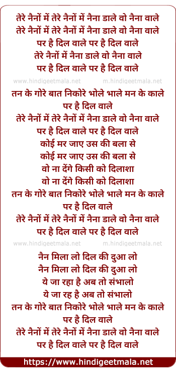 Lyrics of Tere Naino Me Naina Daale - तेरे नैनों में तेरे नैनों में नैना डाले वो नैना वाले