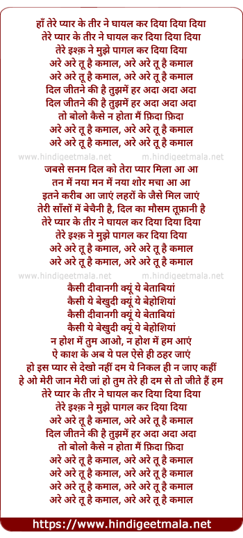 tere pyar ke tir ne ghayal kar diya diya diya