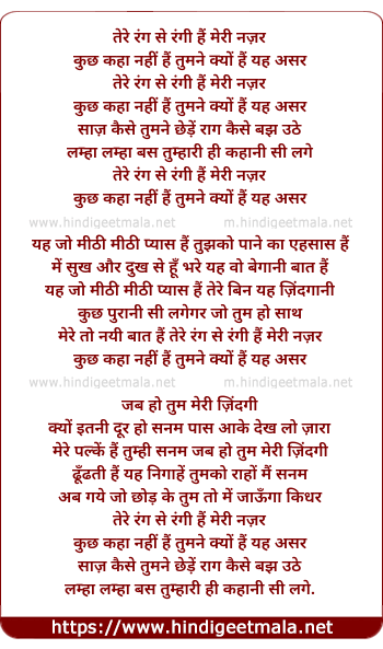 Lyrics of Tere Rang Se Rangi Hai Meri Najar (Male) - तेरे रंग से रंगी हैं मेरी नज़र