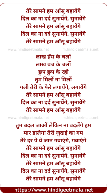 Lyrics of Tere Saamne Hum Aansu Bahayenge - तेरे सामने हम आँसू बहायेंगे
