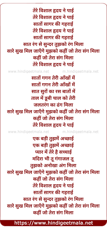 Lyrics of Tere Vishal Hriday Ne Payi - तेरे विशाल हृदय ने पाई