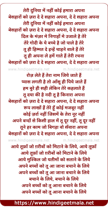 Lyrics of Teree Dooniya Me Nahi Koyi Hamara Apna - तेरी दुनिया में नहीं कोई हमारा अपना