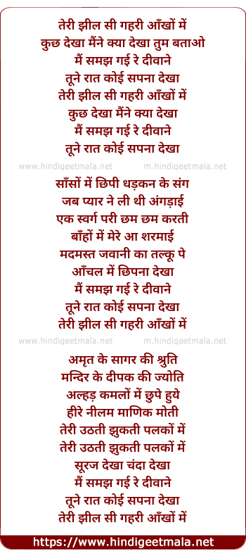 Teree Jhil See Geharee Aankho Me - तेरी झील सी गहरी आँखों में