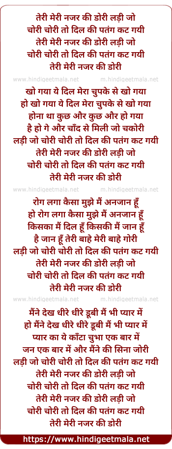 Lyrics of Teree Meree Najar Kee Doree Ladee Jo - तेरी मेरी नजर की डोरे लड़ी जो