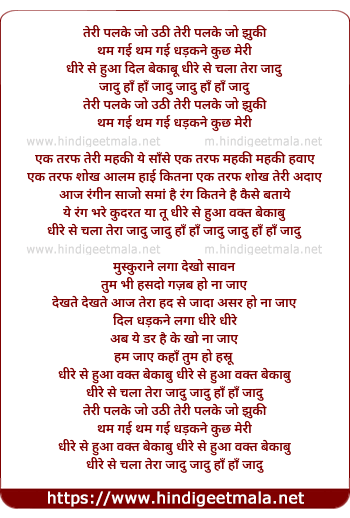Lyrics of Teree Palke Jo Uthee - तेरी पलके जो उठी