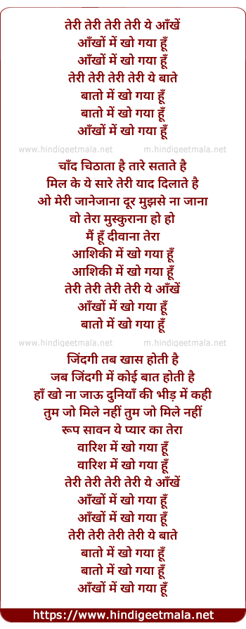Lyrics of Teri Aankhe - तेरी तेरी तेरी तेरी ये आँखें