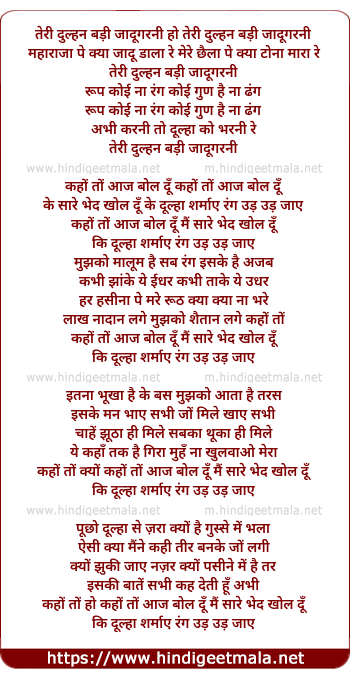 Lyrics of Teri Dulhan Badi Jadugarni - तेरी दुल्हन बड़ी जादूगरनी
