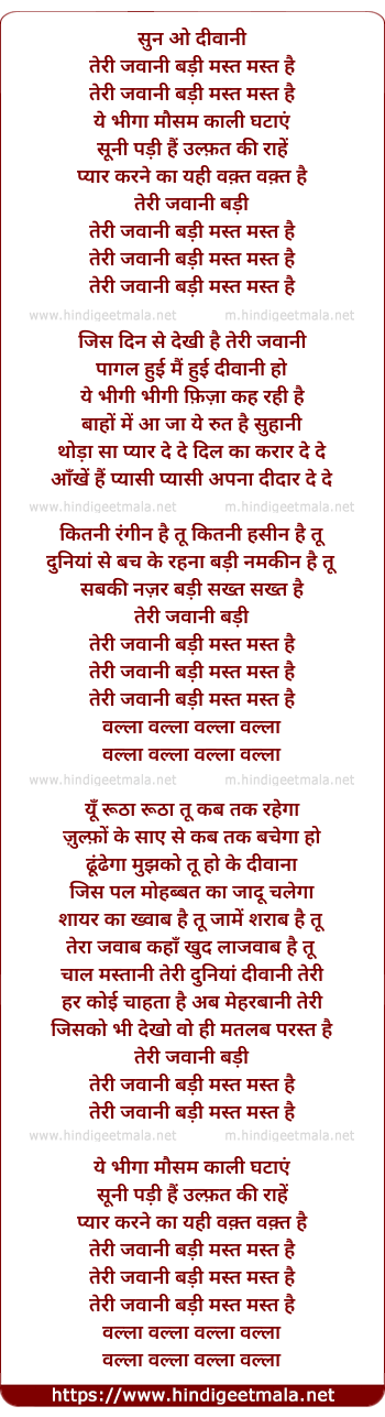 Lyrics of Teri Jawani Badi Mast Mast Hai - तेरी जवानी बड़ी मस्त मस्त है