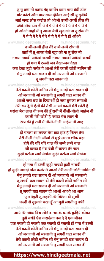 Lyrics of Teri Kaali Choti - तेरी काली चोटी