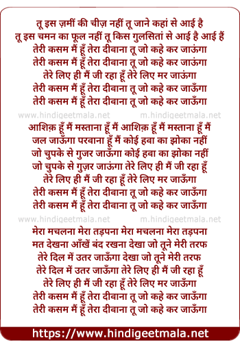 Lyrics of Teri Kasam Mai Hu Tera Deewana - तेरी कसम मैं हूँ तेरा दीवाना