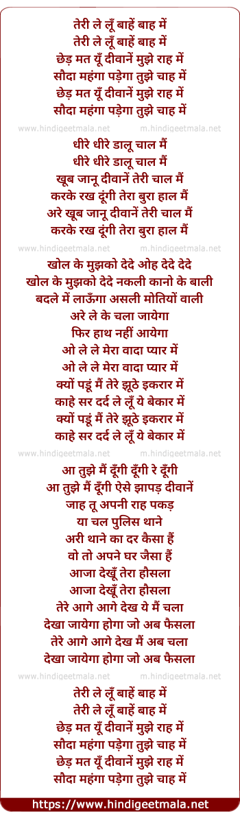 Lyrics of Teri Le Loon Baanhe Baah Me - तेरी ले लूँ बाहें बाह में