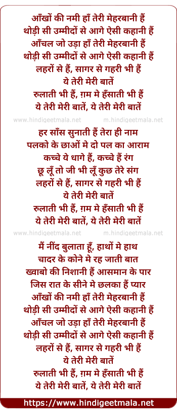 Lyrics of Teri Meri Baatein - तेरी मेरी बातें