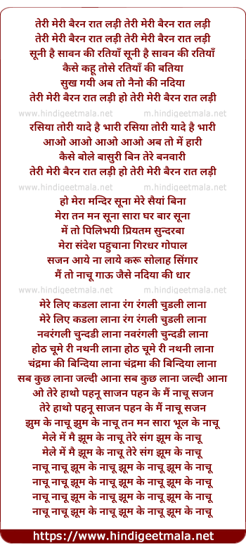 Lyrics of Teri Meri Bairan Raat Ladi - तेरी मेरी बैरन रात लड़ी