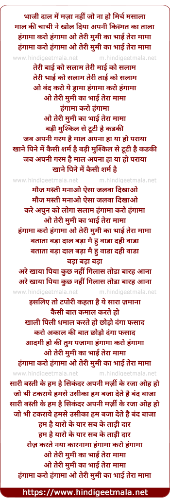 hangama karo hangama o teri mummy ka bhai tera mama