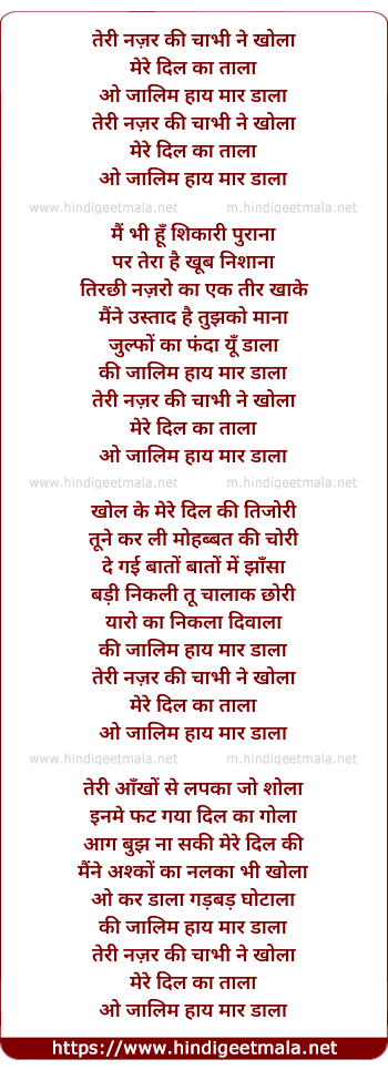 Lyrics of Teri Nazar Ki Chabi Ne Khola - तेरी नज़र की चाभी ने खोला