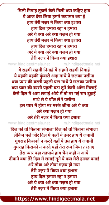 Lyrics of Teri Nazar Ne Kiya Kya Ishara - तेरी नजर ने किया क्या इशारा