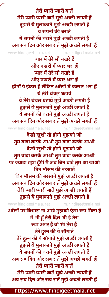 Lyrics of Teri Pyari Pyari Bate - तेरी प्यारी प्यारी बातें