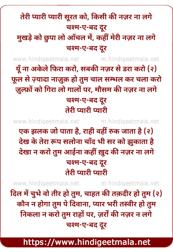 Lyrics of Teri Pyari Pyari Surat Ko Kisi Ki Nazar Na Lage - तेरी प्यारी प्यारी सूरत को किसी की नजर ना लगे