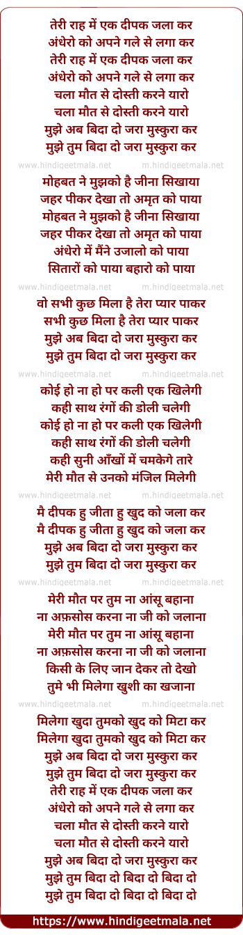 Lyrics of Teri Raah Me Ek Deepak