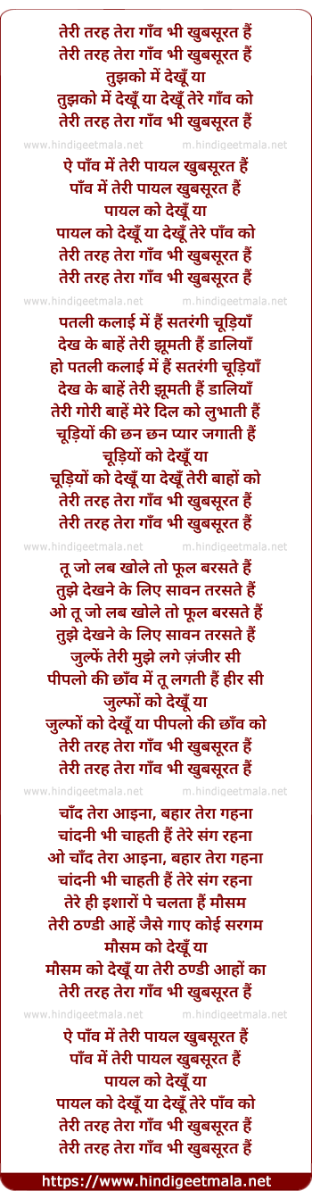 Lyrics of Teri Tarah Tera Gao - तेरी तरह तेरा गाँव भी खुबसूरत हैं