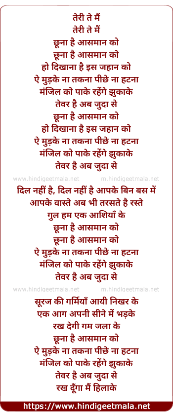 Lyrics of Teri Te Me - तेरी ते मैं