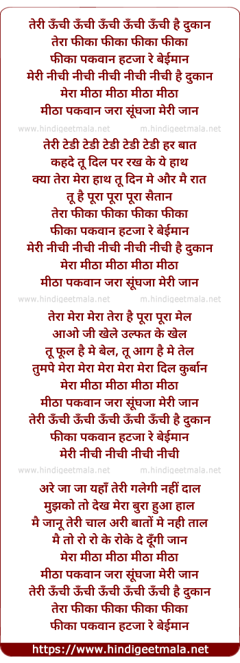 Lyrics of Teri Unchi Unchi Unchi Unchi Hai Dukan - तेरी ऊँची ऊँची ऊँची ऊँची ऊँची है दुकान