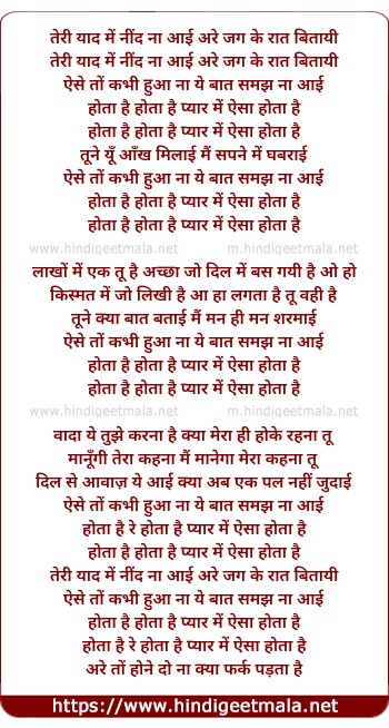 Lyrics of Teri Yad Me Nind Na Aayi - तेरी याद में नींद ना आई