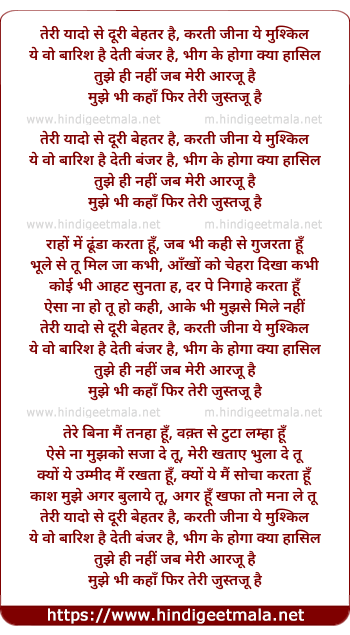 teri yaado se doori behtar hai, karti jeena yeh mushkil