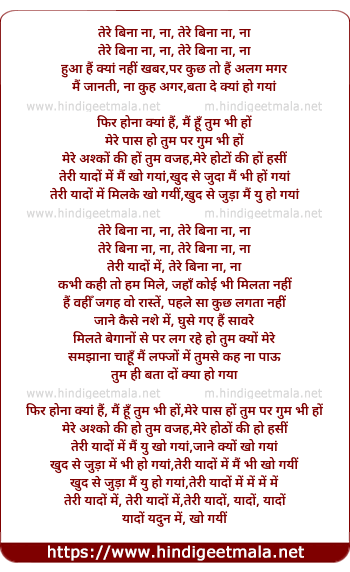 Lyrics of Teri Yaadon Mein (Behen hogi teri-2017) - तेरी यादों में ( बेहन होगी तेरी- 2017)