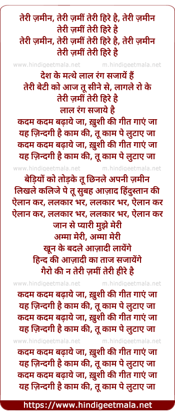 kadam kadam badhaye ja, khushi ki geet gaye ja