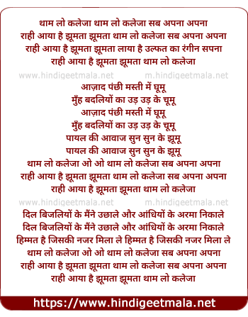 Lyrics of Tham Lo Kaleja Sab Apna Apna - थाम लो कलेजा सब अपना अपना