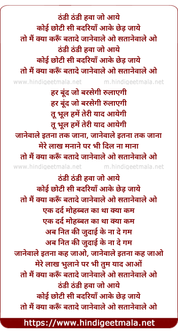 Lyrics of Thandi Thandi Hawa Jo Aaye - ठंडी ठंडी हवा जो आये