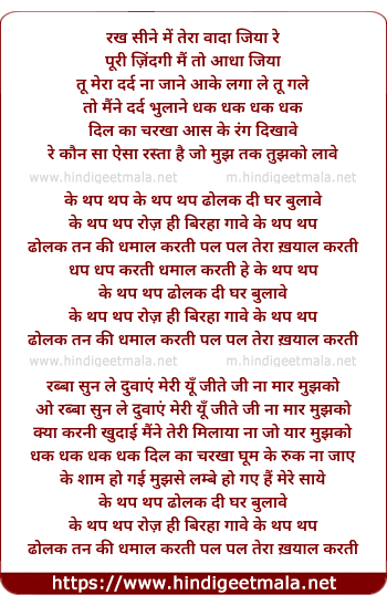 Lyrics of Thap Thap Dholak Di Ghar Bulave - थप थप ढोलक दी घर बुलावे
