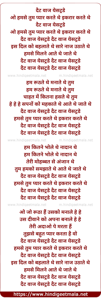 Lyrics of That Waas Yesterday - दैट वाज येसट्रडे