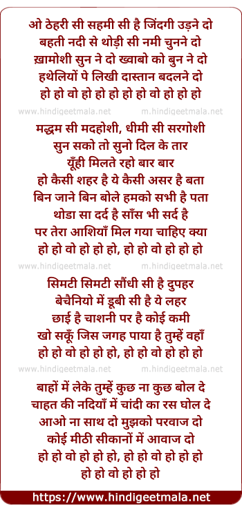 Lyrics of Thehri Si Sehmi Si Hai Zindagi Udne Do - ठेहरी सी सहमी सी है जिंदगी उड़ने दो