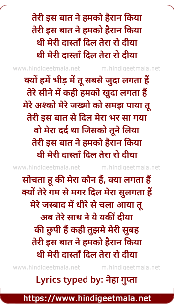 Lyrics of Thi Meri Dastan - थी मेरी दास्ताँ