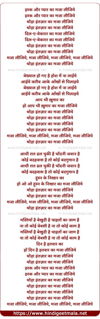 Lyrics of Thoda Intjaar Ka Maja Lijiye - इश्क और प्यार का मजा लीजिये