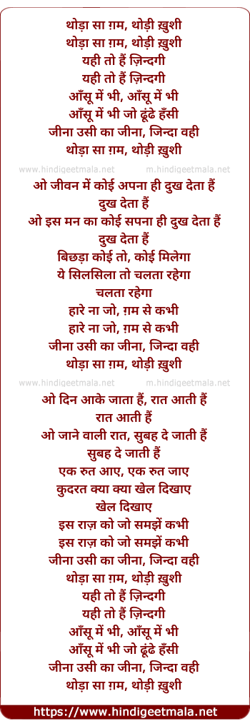 Lyrics of Thoda Sa Gham Thodi Khushi (Female) - थोड़ा सा ग़म, थोड़ी ख़ुशी