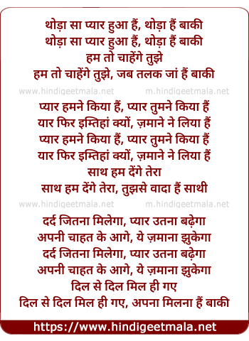 Lyrics of Thoda Sa Pyar Hua Hai, Thoda Hai Baki - थोड़ा सा प्यार हुआ हैं, थोड़ा हैं बाकी