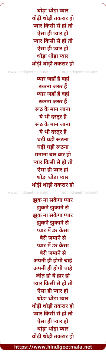 Lyrics of Thoda Thoda Pyar - थोड़ा थोड़ा प्यार