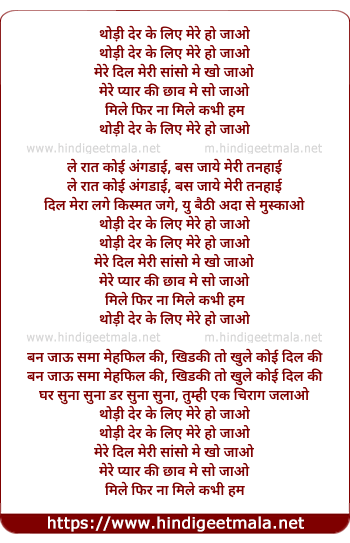 Lyrics of Thodi Der Ke Liye Mere Ho Jao - थोड़ी देर के लिए मेरे हो जाओ