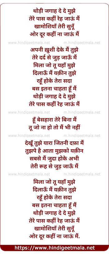 Lyrics of Thodi Jagah De De Mujhe - थोड़ी जगह दे दे मुझे